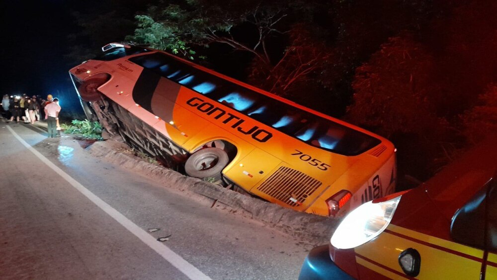 Um ônibus da empresa Gontijo tombou e caiu em uma canaleta na BR-262, cidade de Rio Casca, região Central de Minas Gerais, por volta das 4 horas desta Sexta-Feira, 29 de março. Equipes de resgate iniciaram o socorro logo depois do acidente.