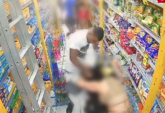 Câmeras de segurança registraram o momento em que um homem agrediu violentamente a esposa dentro de um mercado no bairro de Campos Elíseos, região central de São Paulo. O caso aconteceu na última segunda-feira (10).