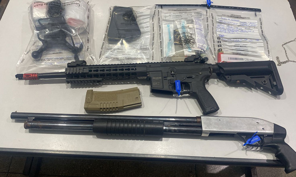 Na manhã de sexta-feira (12), policiais militares do 24º Batalhão, por meio da Companhia de Emprego Tático Operacional (CETO), deram apoio à Polícia Civil no cumprimento de um mandado judicial no bairro Doutor Juracy, em Brumado, no sudoeste da Bahia. Durante a ação, foram apreendidos uma espingarda calibre 12, munições de diversos calibres, um simulacro de fuzil, rádio comunicador, balança de precisão, celulares, além de maconha, haxixe e comprimidos semelhantes ao êxtase. Também foram encontrados materiais para embalar drogas, dinheiro em espécie, objetos de uso tático e anabolizantes. O suspeito alvo do mandado e todo o material recolhido foram encaminhados à Delegacia de Polícia Civil de Brumado, onde seguem as investigações e os procedimentos legais.